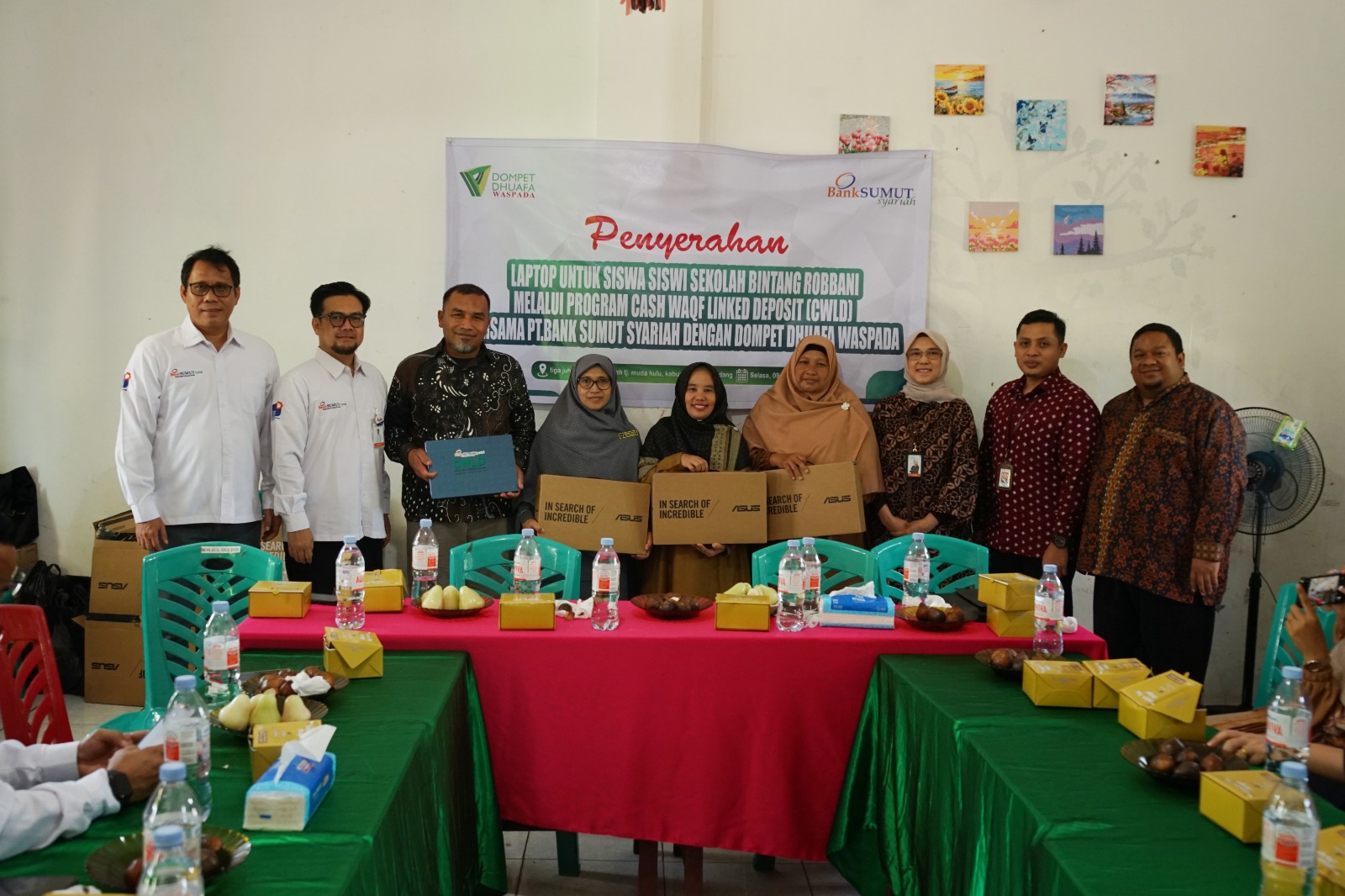 Medan – Bank Sumut Syariah bersama Dompet Dhuafa Waspada menyalurkan bantuan laptop kepada Sekolah Bintang Rabbani melalui Program Cash Wakaf Link Deposit (CWLD), Selasa (9/12).