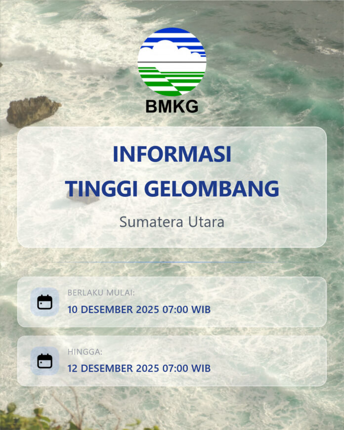 Medan – Badan Meteorologi, Klimatologi, dan Geofisika (BMKG) Stasiun Meteorologi Kelas II Maritim Belawan Medan mengeluarkan peringatan dini gelombang tinggi yang berpotensi terjadi di sejumlah perairan Sumatera Utara.