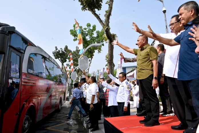 Medan-Gubernur Sumatera Utara (Sumut) Edy Rahmayadi melepas keberangkatan 94 bus Mudik Gratis Bermartabat yang diselenggarakan oleh Pemerintah Provinsi (Pemprov) Sumut. Total peserta yang mengikuti mudik gratis tersebut sebanyak 3.500 orang.