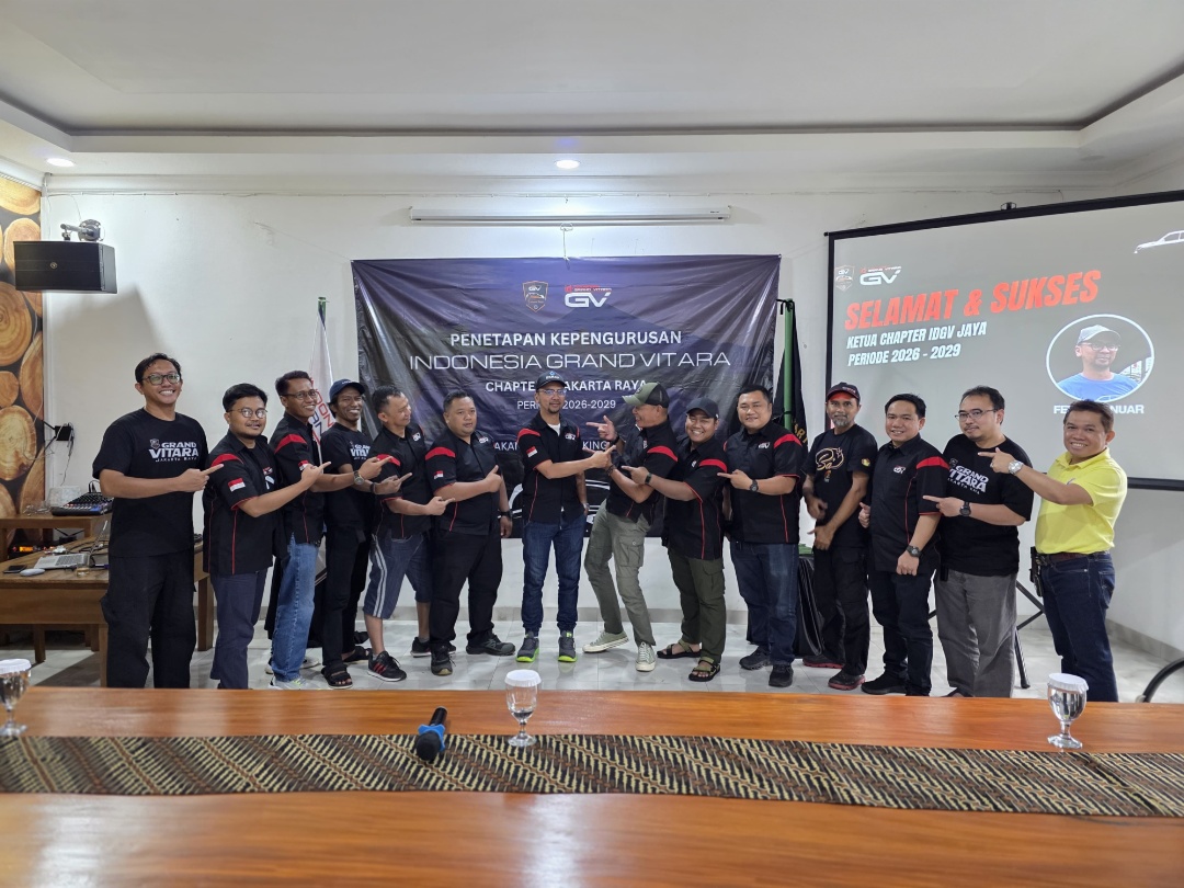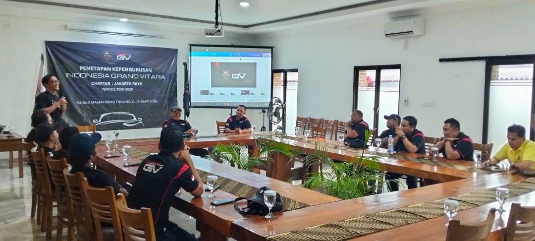 Jakarta – Komunitas Indonesia Grand Vitara (IdGV) Chapter Jakarta Raya resmi menetapkan Ferry sebagai Ketua Chapter periode 2026–2029 dalam kegiatan penetapan kepengurusan yang digelar di Gubug Makan Mang Engking, Jakarta, Minggu (11/1/2026). Kegiatan tersebut dihadiri pengurus, anggota IDGV Jakarta Raya, serta perwakilan komunitas, dan berlangsung dalam suasana kekeluargaan.
