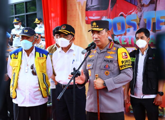 Penekanan tersebut disampaikan Kapolri saat mengecek langsung kesiapan pengamanan mudik Lebaran di Pos Terpadu Rest Area KM 57 Tol Jakarta-Cikampek (Japek), bersama Menteri Koordinator Bidang Pembangunan Manusia dan Kebudayaan (Menko PMK) Muhadjir Effendy, Menteri Perhubungan (Menhub) Budi Karya Sumadi serta Menteri Pekerjaan Umum dan Perumahan Rakyat (PUPR) Basuki Hadimuljono, Selasa (26/4/2022).