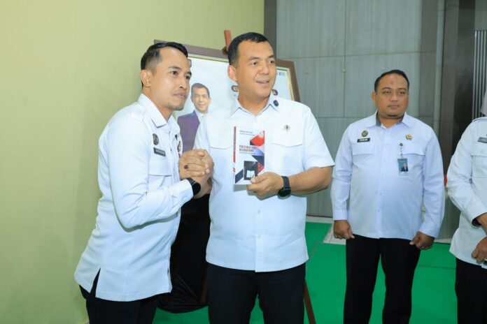 Di tengah suasana serius pengarahan, muncul momen istimewa. Kepala Rutan Kelas IIB Sampang, Kamesworo, maju mempersembahkan buku karyanya berjudul “Pena di Balik Jeruji: Wujud Perubahan” langsung kepada Wamen Imipas. Buku tersebut lahir dari refleksi dan pengalaman nyata di dunia pemasyarakatan.