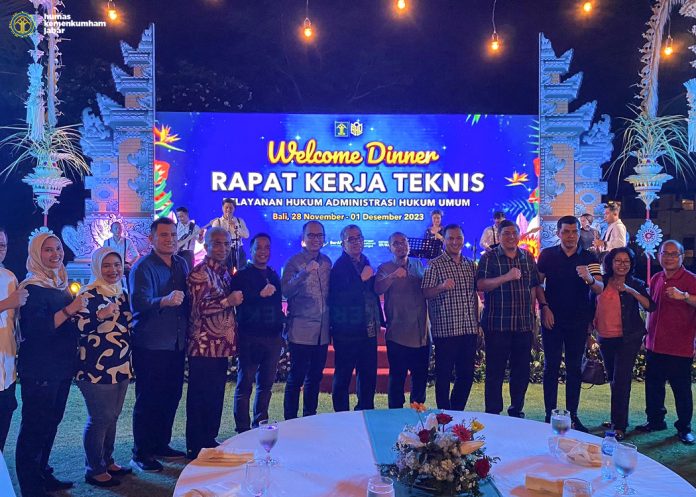 BALI-Kemenkumham Jabar hari ini, Selasa, 28 November 2023, melalui Tim Pelaksana Kantor Wilayah yang terdiri dari Kadivyankumham, Andi Taletting Langi, Kabidyankum, Ahmad Kapi, Kasubbid Yan AHU, Zaki Fauzi, dan JFU Pelaksana Subbid AHU hadiri Kegiatan Welcome Dinner dan Sambutan Pengantar Rapat Kerja Teknis Pelayanan Hukum Administrasi Hukum Umum.
