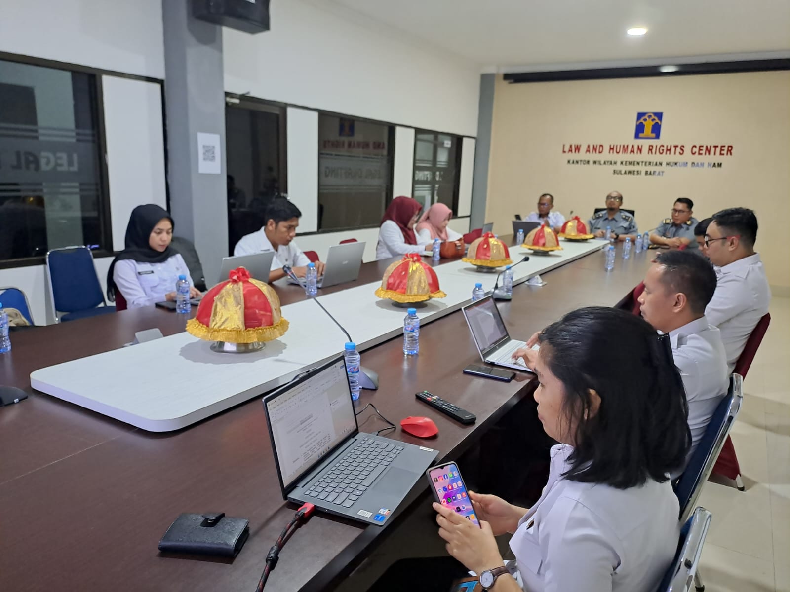 Kegiatan berlangsung di Ruang Rapat Prof. Baharuddin Lopa, Kanwil Kemenkumham Sulawesi Barat dipimpin oleh Kepala Divisi Pelayanan Hukum dan HAM Rahendro Jati.