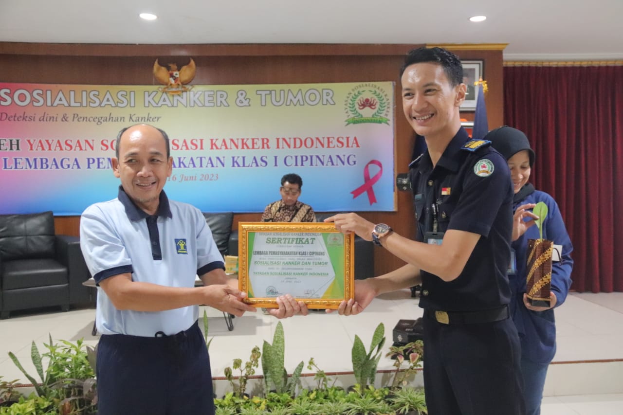 Jakarta-Lembaga Pemasyarakatan (Lapas) Kelas I Cipinang bersama Yayasan Sosialisasi Kanker Indonesia (YSKI) Cabang DKI Jakarta melaksanakan kegiatan sosialisasi kanker dan tumor, di aula gedung 2, Jumat (16/6/2023).