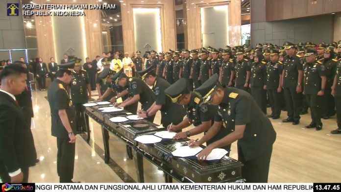 Jakarta-Menteri Hukum dan HAM, Yasonna H. Laoly memberikan promosi dan mutasi kepada 120 pegawai dalam jabatan Pimpinan Tinggi (Pimti) Pratama Kementerian Hukum dan HAM (Kemenkumham).