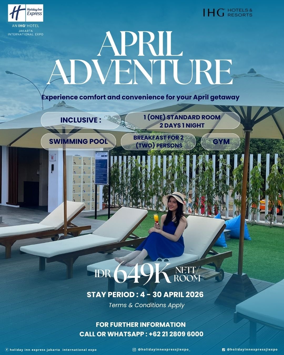 Jakarta – Menyambut bulan April dengan semangat baru, Holiday Inn Express Jakarta International Expo menghadirkan promo kamar spesial bertajuk April Adventure. Penawaran ini dirancang untuk memberikan pengalaman menginap yang nyaman, praktis, dan menyenangkan bagi para tamu.